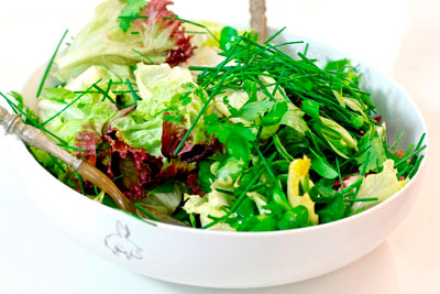Una ensalada puede constituir un plato completo para una cena informal en la que no es necesario ni sentarse a la mesa, pues todo lo que se necesita cabe en una bandeja. Esta ensalada, con lechugas, verdura, pollo y fruta constituye un buen ejemplo de lo que te digo. Y puede ser una elección para esta tranquila noche de sábado. Es una lechuga de origen italiano, rizada, de textura suave, de color amoratado en el extremo superior y verde en el inferior, vendiendose sus hojas sueltas y solo la parte de color morado. Es ligeramente amarga.